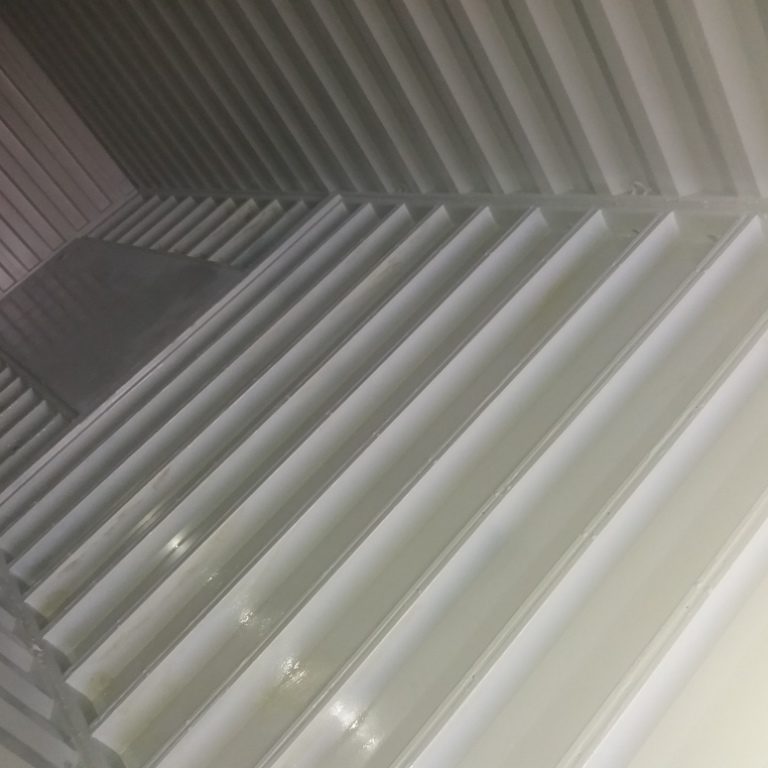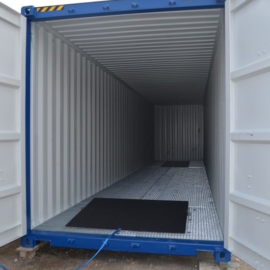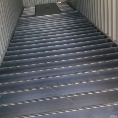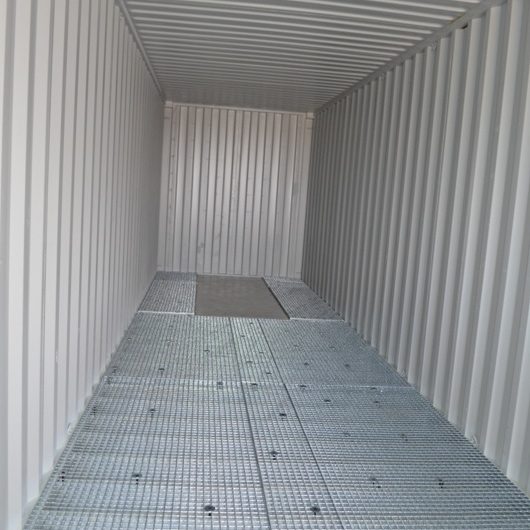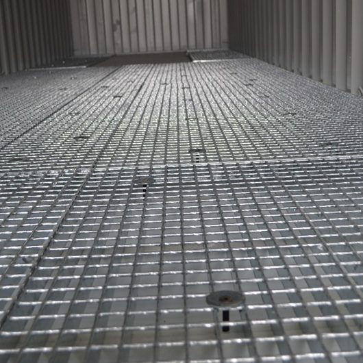Το δάπεδο του εμπορευματοκιβωτίου έχει καλυφθεί με ειδικές λεκάνες ασφαλείας και πλέγμα.